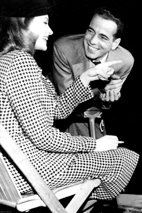 This picture was taken on the set of the film To Have and Have Not (1944). It is an American romance-war-adventure film directed by Howard Hawks. The actress Lauren Bacall and the actor Humphrey Bogart can be seen in this picture.